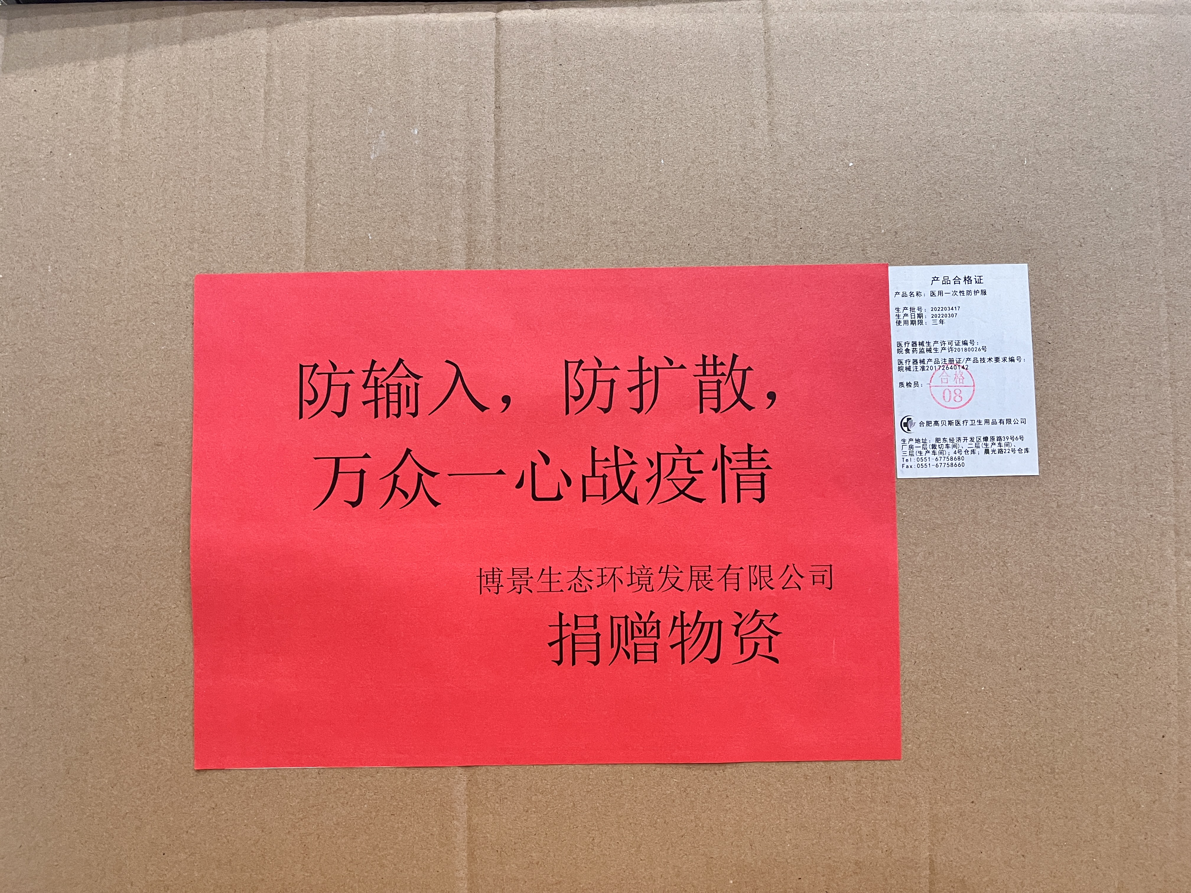 新冠疫情牵动人心,随着防疫工作的全面开展,广大医护人员、交通干警、社区工作者逆行而上,始终奋战在疫情防控的一线。2022年4月8日,应合肥蜀山经济技术开发区管委会倡议,熊猫生态环境在危难时刻伸出援手,向蜀山经开区管委会、蜀山区隔离点捐赠医用一次性防护服800余套,支援我市战斗在一线的防疫工作人员,愿合肥早日渡过难关。