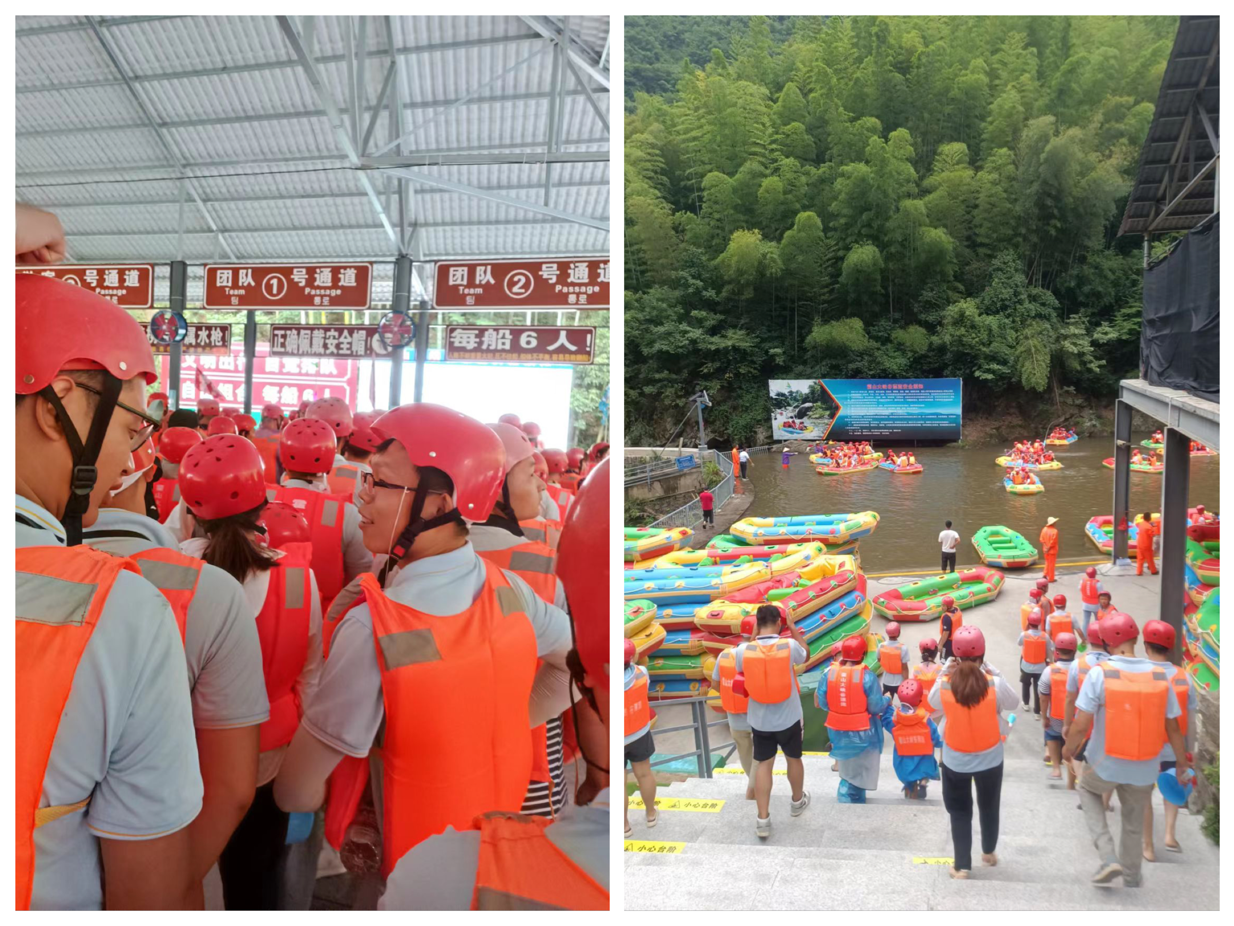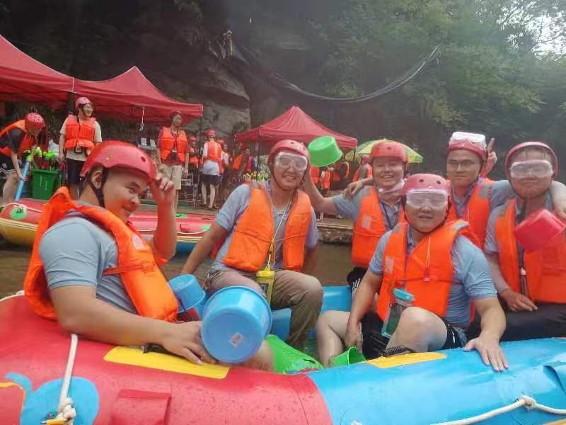 7月23日,主题为"凝心聚力扬帆起航,激情漂流共同前进"的漂流团建活动在霍山大峡谷举行。熊猫环卫事业部的员工们统一着装,戴好安全帽,穿上救生衣全副武装,做好漂流安全准备工作。